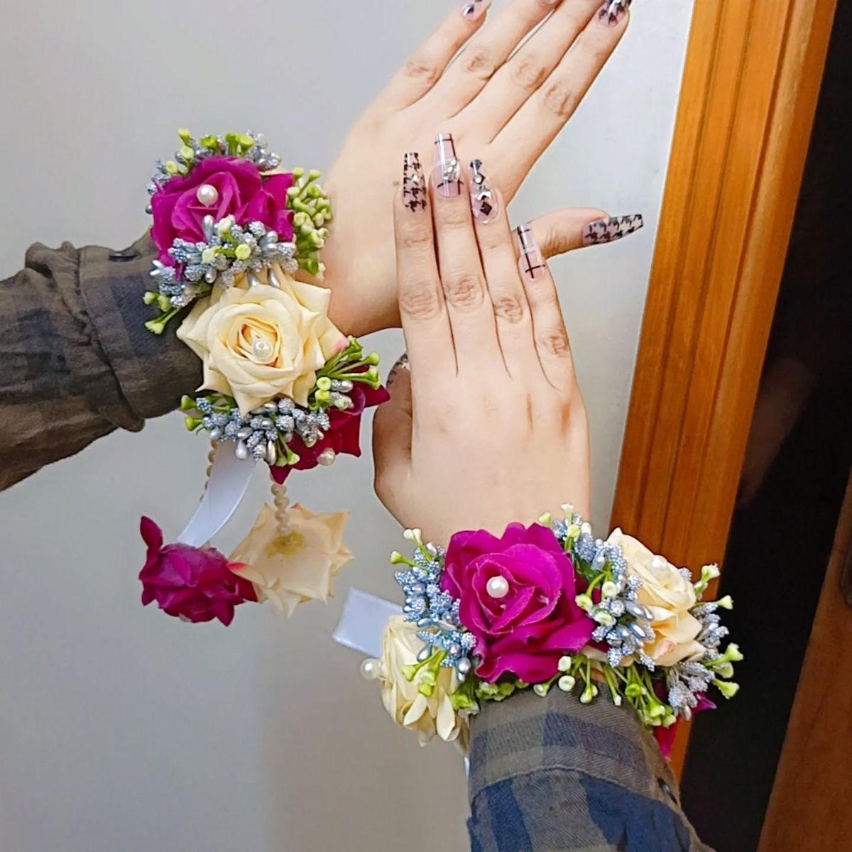 Exotic moss-pink & yellow roses featuring lustrous crystal